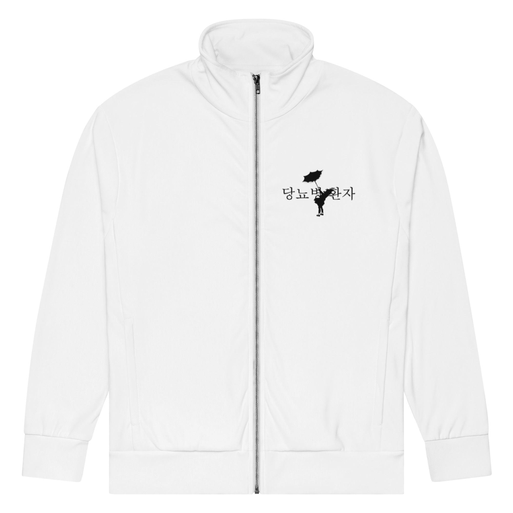 Stay warm and trendy with this zip-up track jacket—perfect for workouts, outdoor activities, and everyday wear. It’s made from recycled materials, has brushed fleece inside for warmth, and zippered pockets.